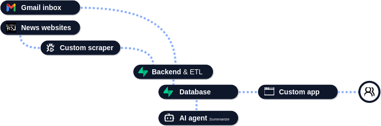 A professional solo trader needed a solution to aggregate economic and financial news from numerous sources, centralizing and summarizing key signals to reduce noise and enable better decision-making with clear, relevant data.